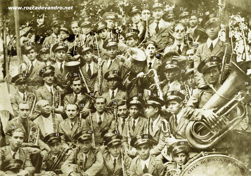 Elenco dei componenti della Banda Musicale di Rocca d’Evandro in una fotografia del 1937